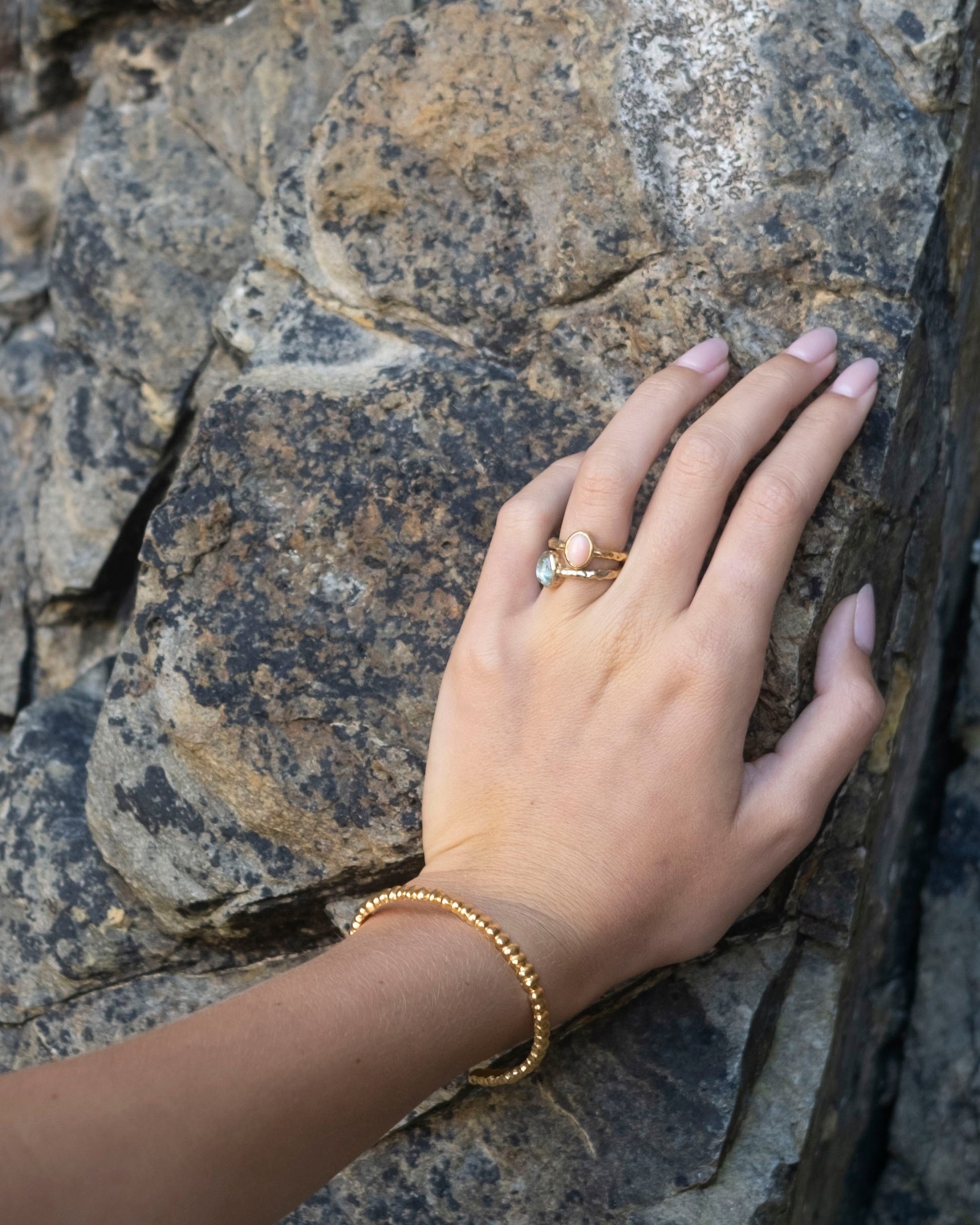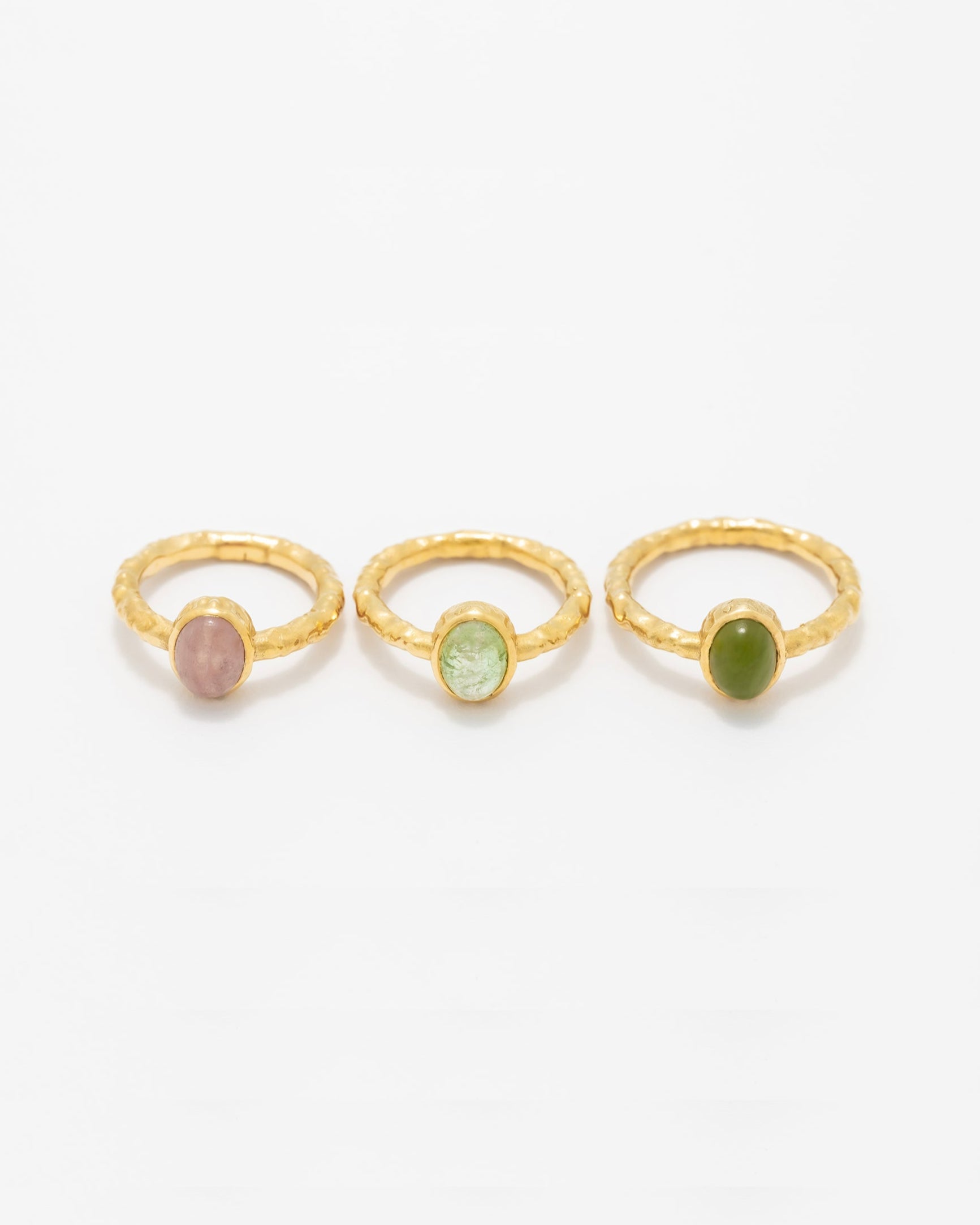 Anel martelado em prata 925 com banho de ouro de 24 quilates e pedra oval