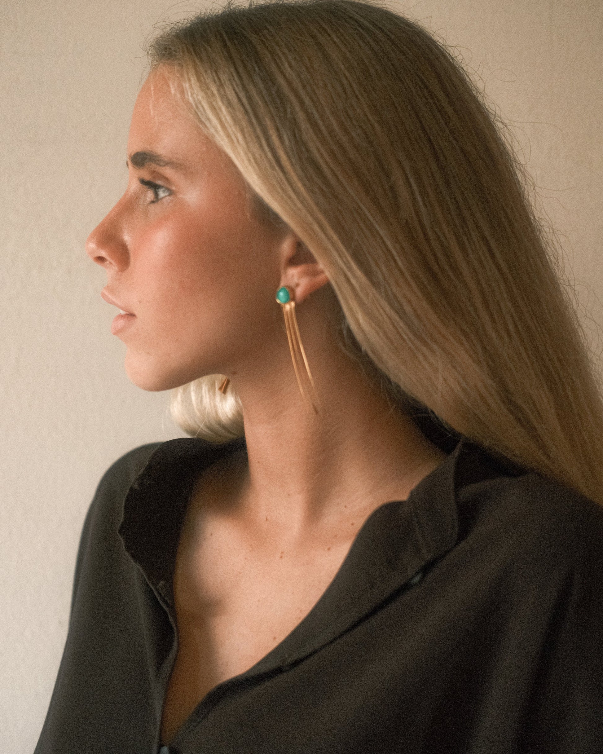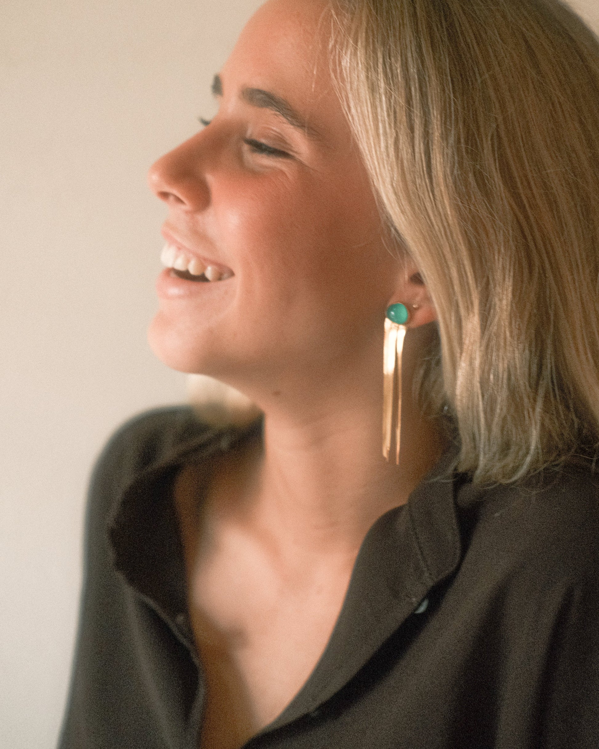 Brincos Fita com Ágata Verde