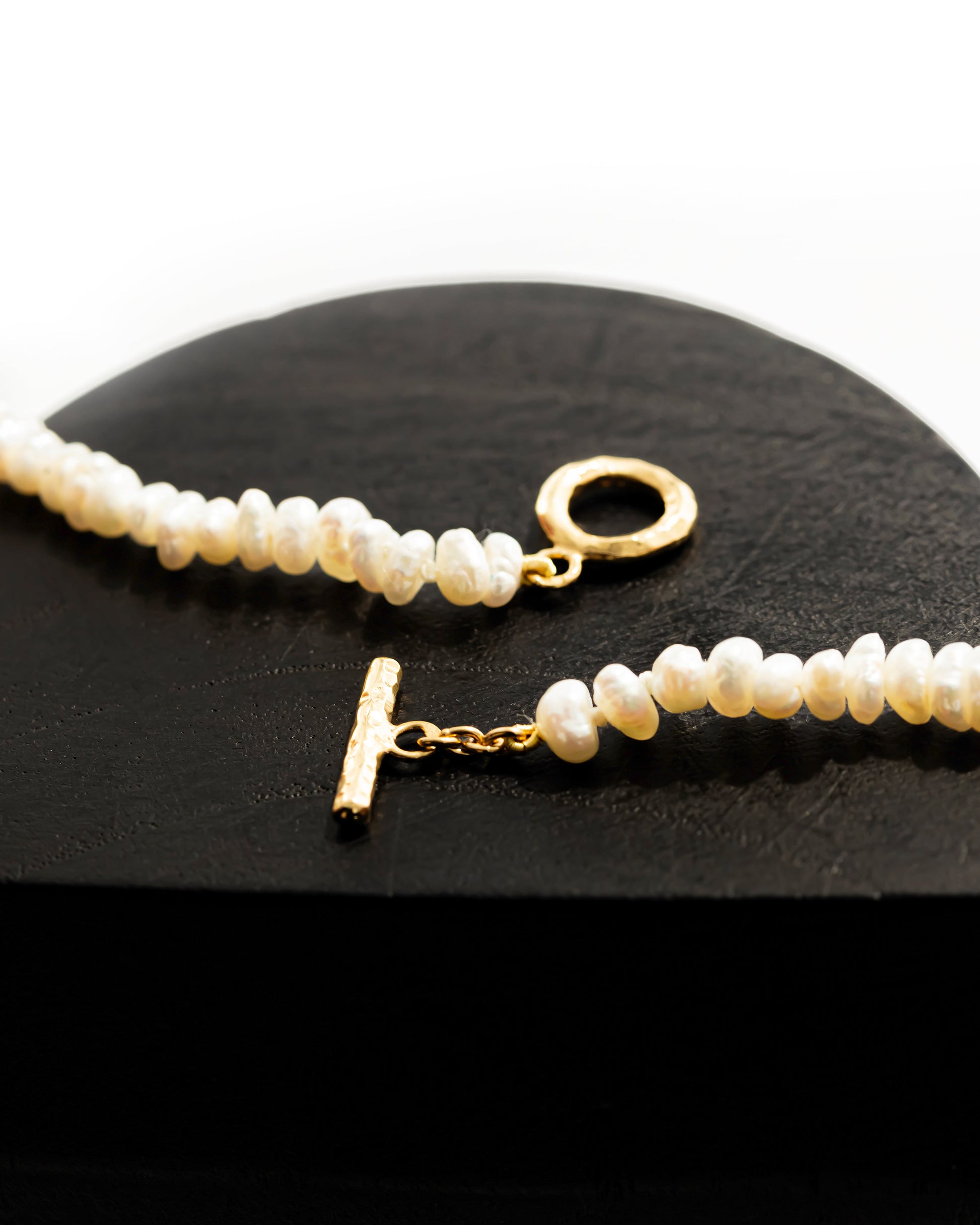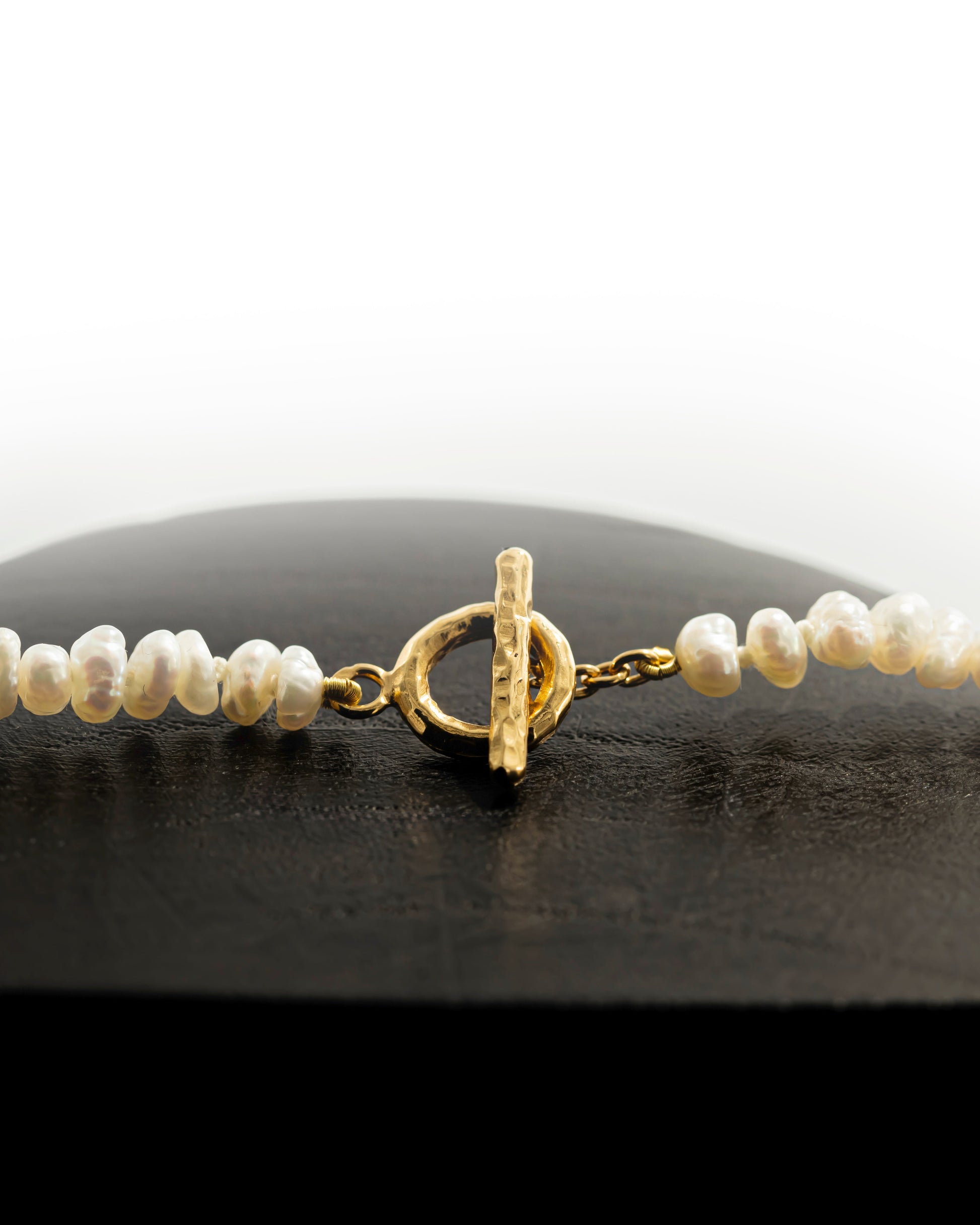 Colar de pérolas e fecho em prata 925 com banho de ouro de 24 quilates.