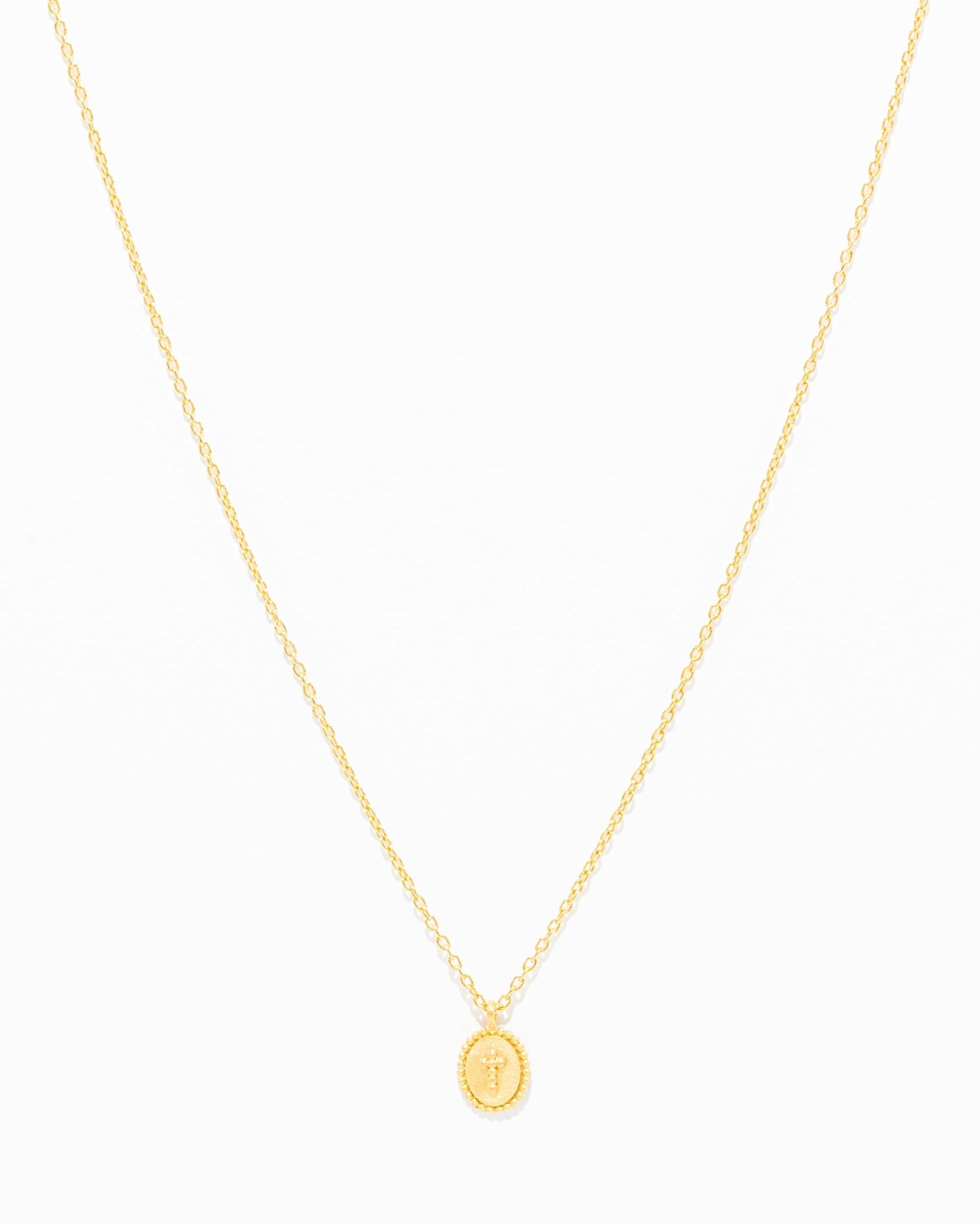 OURO Colar Medalha Cruz Bolinhas